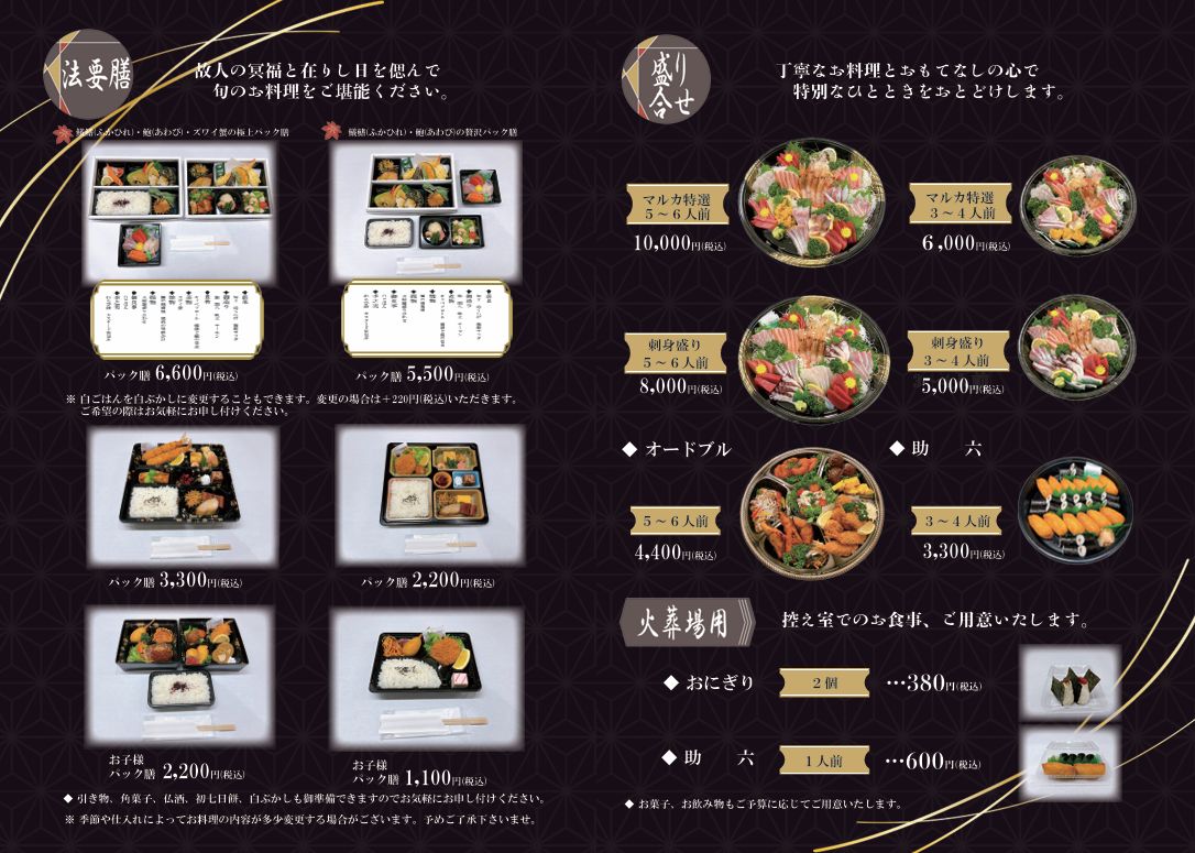 大切な方を偲ぶひとときに、心を込めたお料理をご用意いたします。 季節の食材を使い、真心を込めてお作りするお料理は、ご家族やご親族の語らいの場にふさわしい内容となっております。